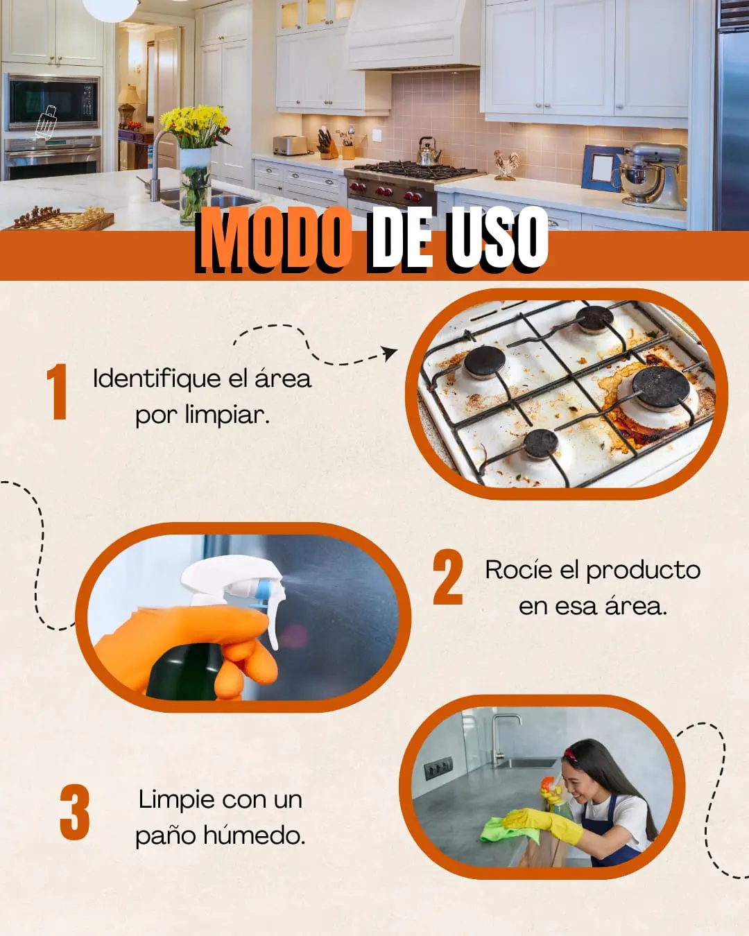 ✅ Deja las superficies limpias, brillantes y sin rastros de grasa.