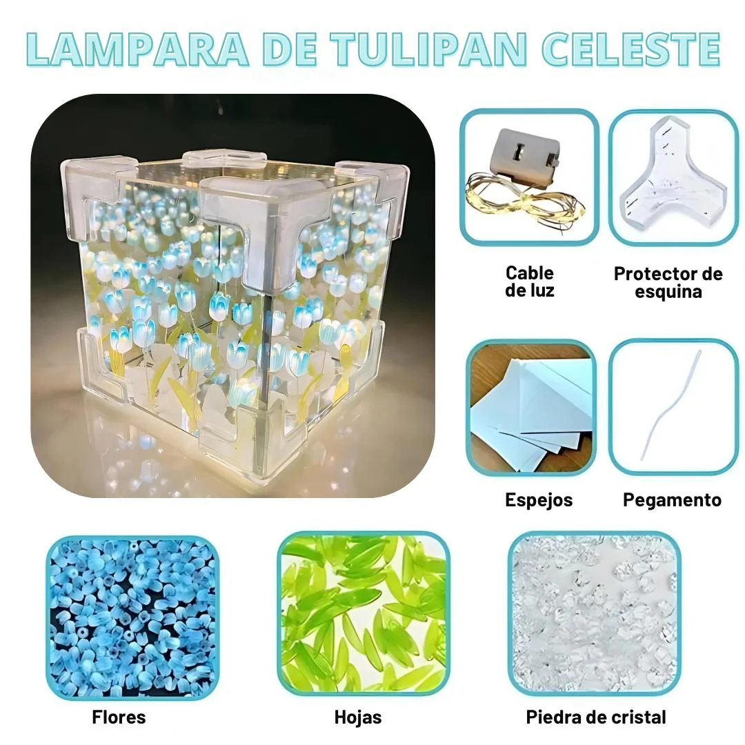 Sorprende con un detalle único y encantador. Este Cubo Tulipán a Pilas llega desarmado para facilitar su envío y armado, e incluye obsequios especiales que enamoran. Ideal para regalar en ocasiones especiales o para decorar espacios con un toque romántico y cálido.