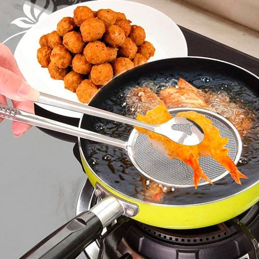 Pinza Espátula para Freír con Malla Escurridora 2 en 1 de Acero Inoxidable para Cocina Multiusos